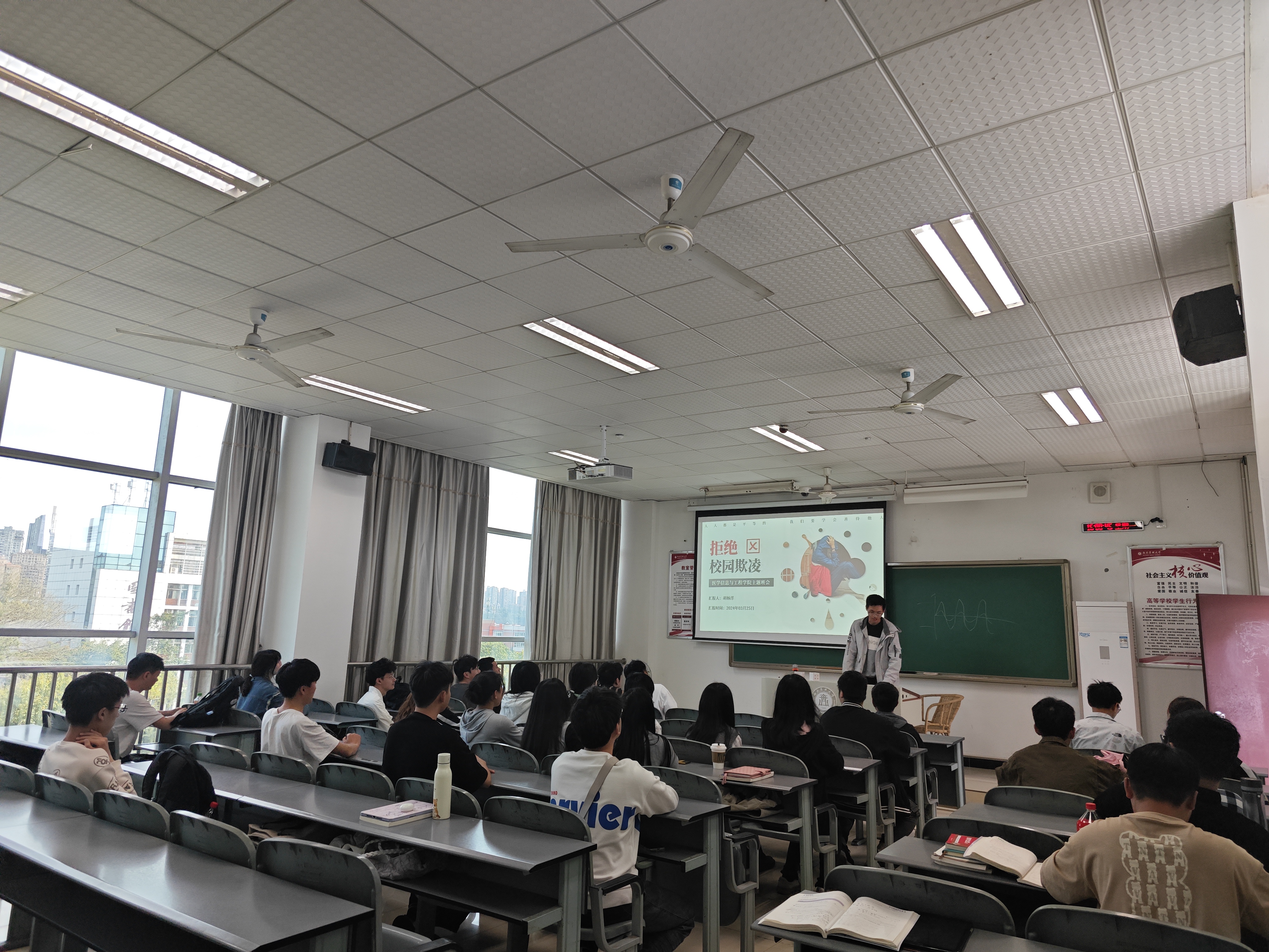 为弘扬校园正气,加强学生思想道德建设,提升学生的安全意识和自我保护能力,营造文明健康、积极向上的学习环境,创建平安和谐的校园。2024年3月27日,医学信息与工程学院各班召开“拒绝欺凌,保护自我”主题班会。