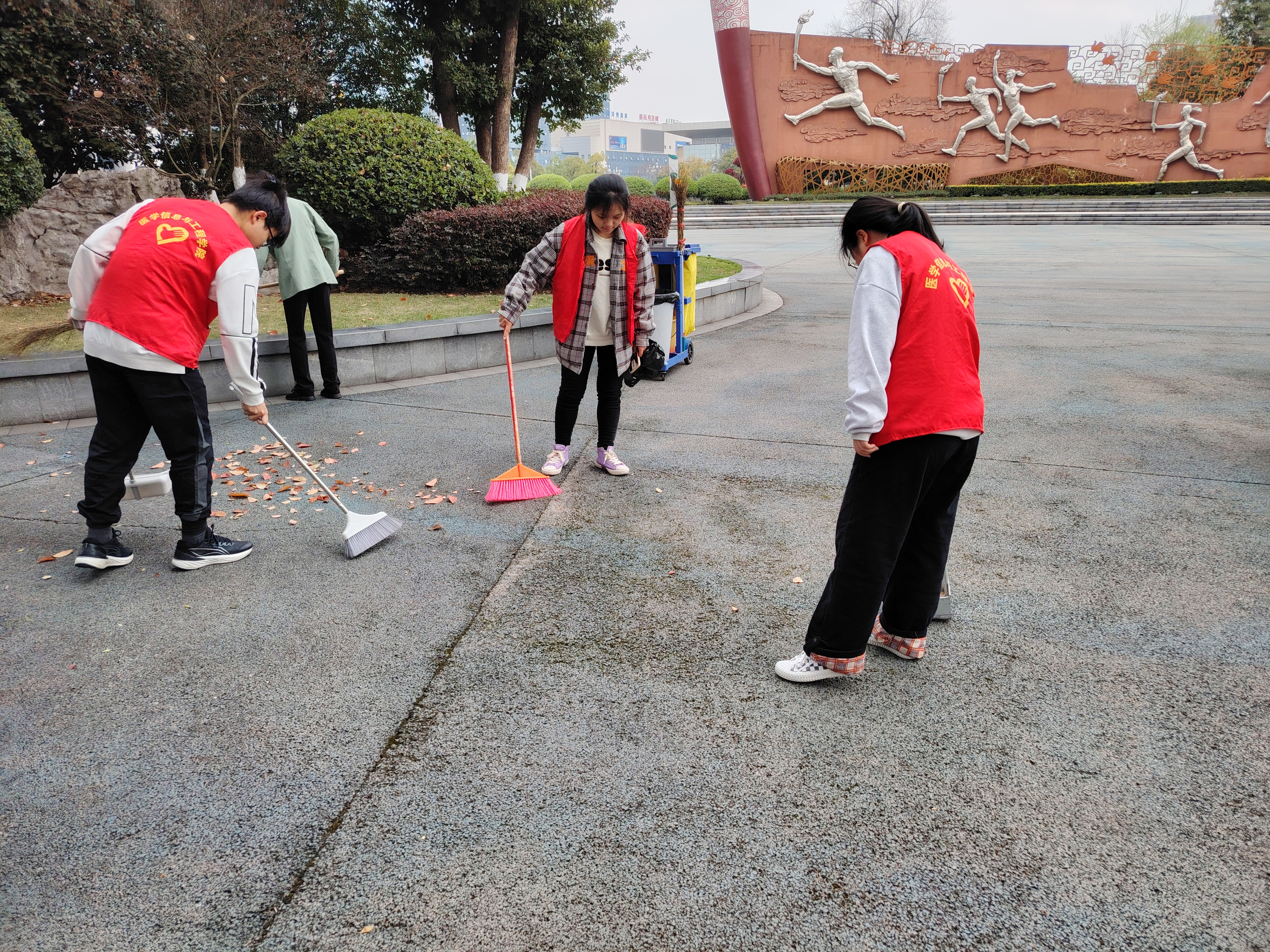 当天上午,生物医学工程专业第二团支部的同学们聚集在奥体中心,自带清洁工具,满怀热情地投入到清理工作中。他们的任务分工明确,一部分同学负责捡拾散落的垃圾,另一部分则负责垃圾分类。此外,还有一组同学担当起了环保知识传播者的角色,他们在清洁活动中向经过的师生宣传保护环境的重要性,解释垃圾分类的必要性。
