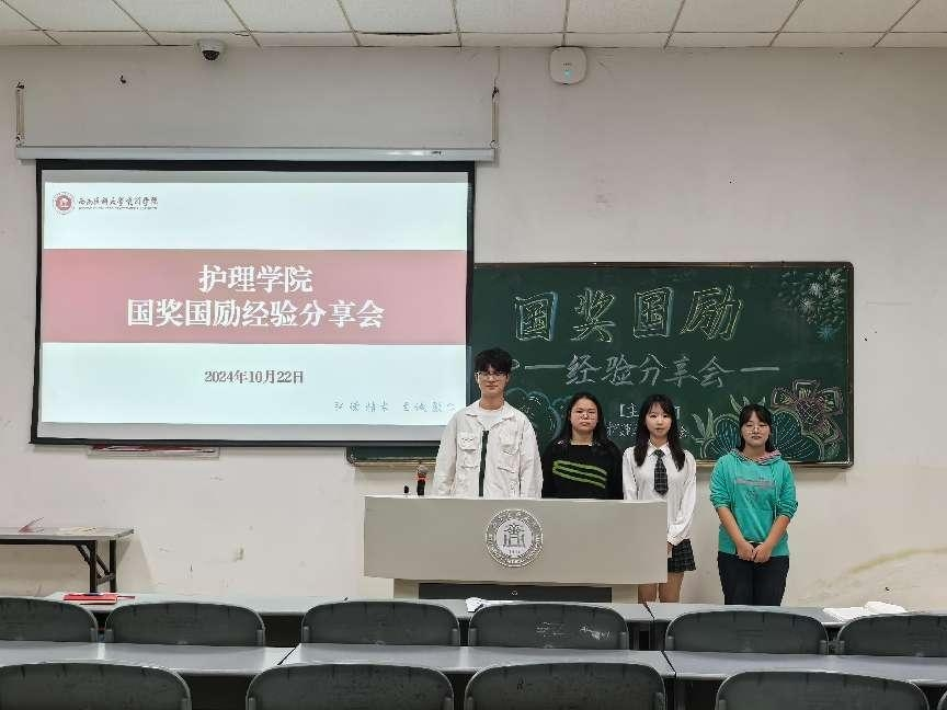 为帮助学生更好地了解国家奖学金和国家励志奖学金的意义,充分调动学院学生的学习积极性,营造刻苦钻研、踔厉奋发的学习氛围,为发挥榜样力量和提升育人效果。日前,护理学院在海川楼405教室举办“追光而遇 沐光而行”国家奖学金和国家励志奖学金获得者代表进行经验分享会,共有100余名学生参加了此次分享会。