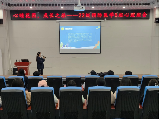 为了帮助同学们在心理班会活动中感受心灵的宁静与美好,让同学们在体验中更好的认识自我,悦纳自我。10月31日上午10点,公共卫生学院2022级预防医学5班全体同学在大学生活动中心多功能报告厅举办以“心晴花园,成长之旅”为主题的心理班会。本次心理班会由班级心理委员向雨鑫主持,班级全体30名同学积极参与。
