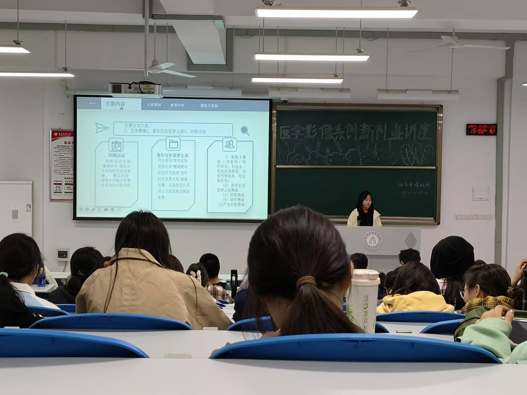 10月26日,医学影像系在学海楼506举办创新创业讲座。本次讲座由双创与二课运营部成员介绍创新创业大赛相关知识,同时邀请2022级医学影像学专业学生赵柳为23、24级近500名同学分享创新创业大赛的相关经验。