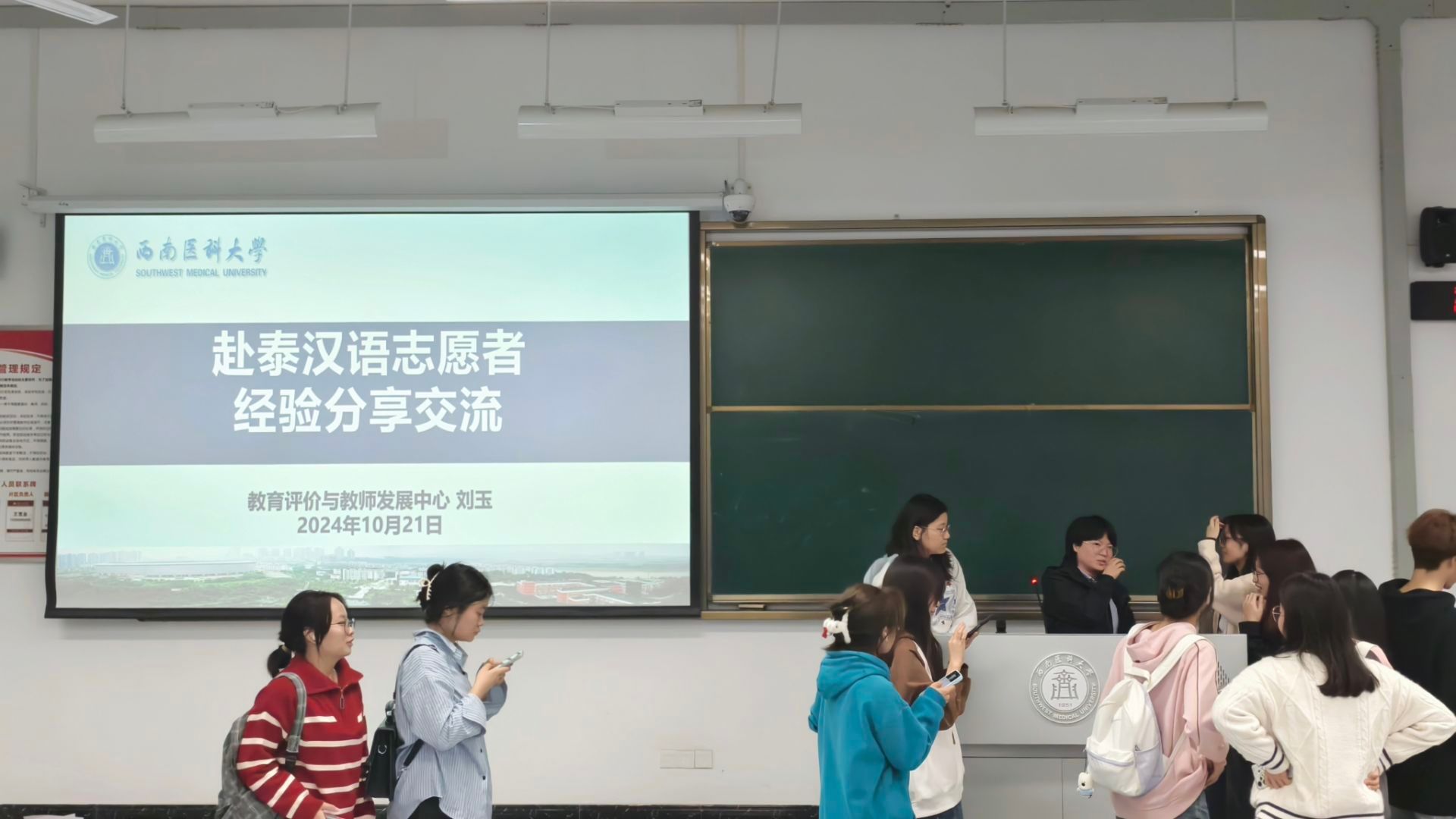 为积极响应国家推动国际中文教育的号召,满足全球中文学习者的需求,10月21日晚,外国语学院在学海楼312教室举办国际中文教育志愿者项目主题讲座。本次活动由盛放生涯规划工作室主办,外国语学院分团委、学生会承办,学校教育评价与教师发展中心评估科副科长,第二十一批赴泰国际中文教育志愿者刘玉主讲,外国语学院学生科科长赖秀娟主持。外国语学院及全校关注国际中文教育志愿者项目的100余名同学参加了活动。