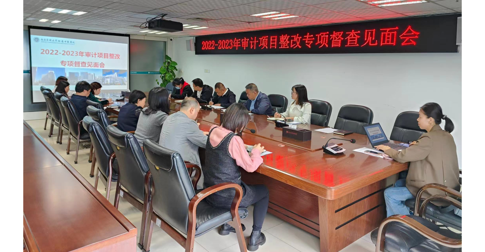 10月9日,西南医科大学附属中医医院召开了2022-2023年审计项目整改专项督查见面会,医院党委副书记、纪委书记鄢飞鹏,审计部、纪委办公室·监察室以及相关职能部门负责人参加了会议。会议由审计部部长黄浩主持。