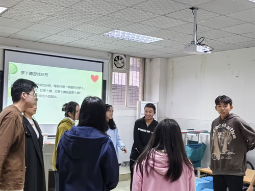 本次团辅活动在热烈的氛围中拉开帷幕,活动负责人首先细致入微地介绍了此次活动的丰富内容及深远目的。随后,为同学们共同观看了一段心理科普视频,它如同一束璀璨的光芒,穿透心灵的迷雾,照亮了同学们的内心世界,引领他们初步踏上探索自我与大学新环境的奇妙旅程。紧接着,活动进入了听猜歌曲环节,悠扬动人的旋律如同一条灵动的纽带,将彼此的心灵紧紧相连,在欢声笑语中,同学们之间的隔阂悄然消散。活动的高潮部分,当属激动人心的萝卜蹲游戏环节。同学们在节奏的不断变换中,全神贯注、反应迅捷,既在轻松愉快的氛围中释放了内心的压力,又极大地增强了团队协作的意识。整个活动流程设计得环环相扣、精彩纷呈,让同学们在趣味盎然的体验中逐渐适应了大学的新环境,在欢声笑语中开启了人生新篇章。