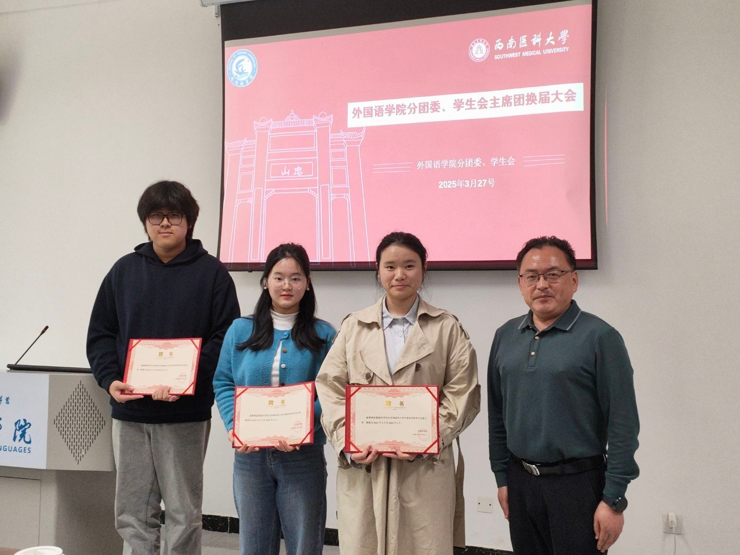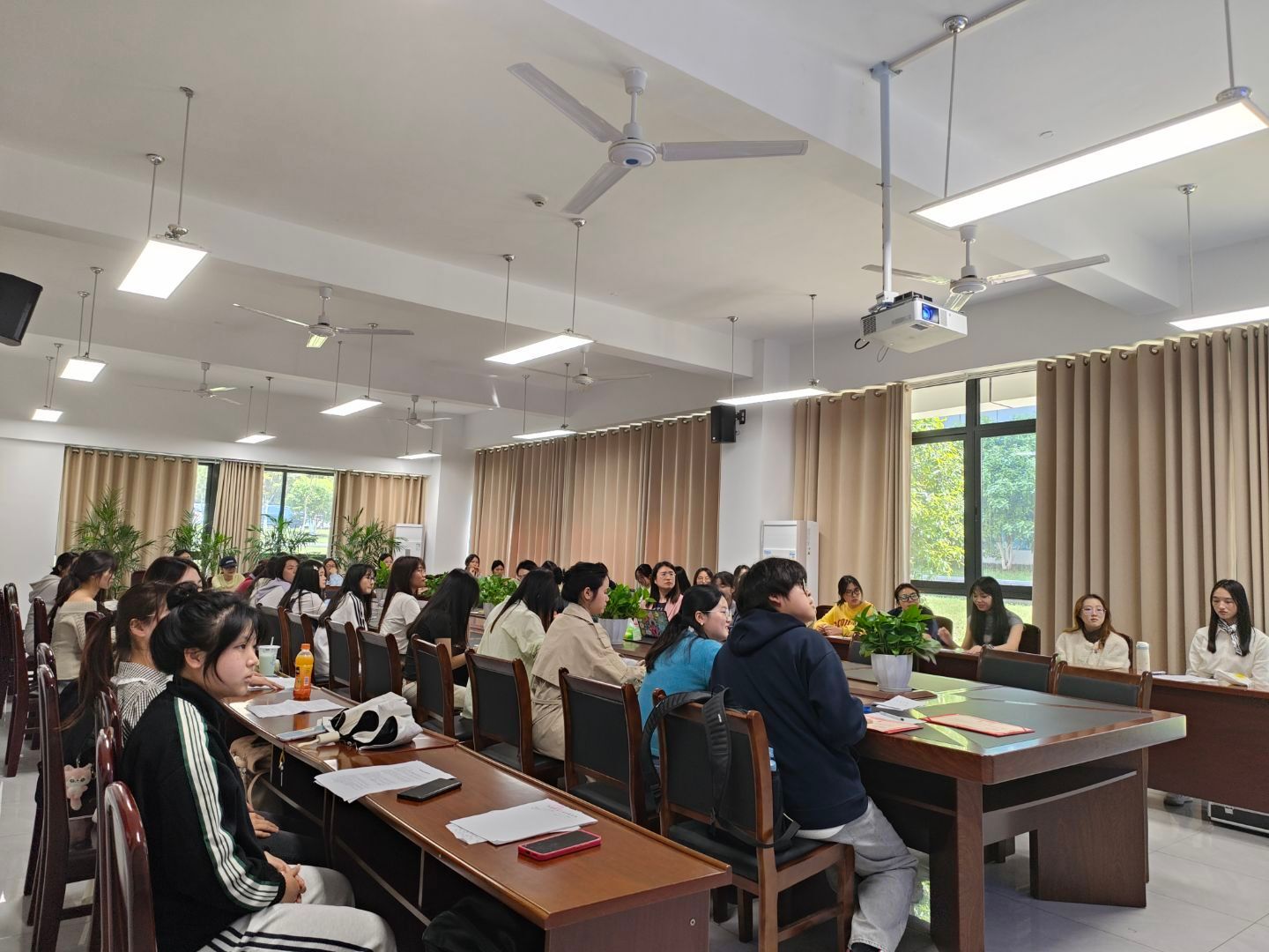 3月27日中午,外国语学院在文渊楼134会议室召开2025年学生会主席团换届大会。学院党委书记周晓昀、党委副书记邓盛木、学生科科长赖秀娟、辅导员何弦以及外国语学院分团委、学生会全体学生干部、各班班长、团支书参加了会议。