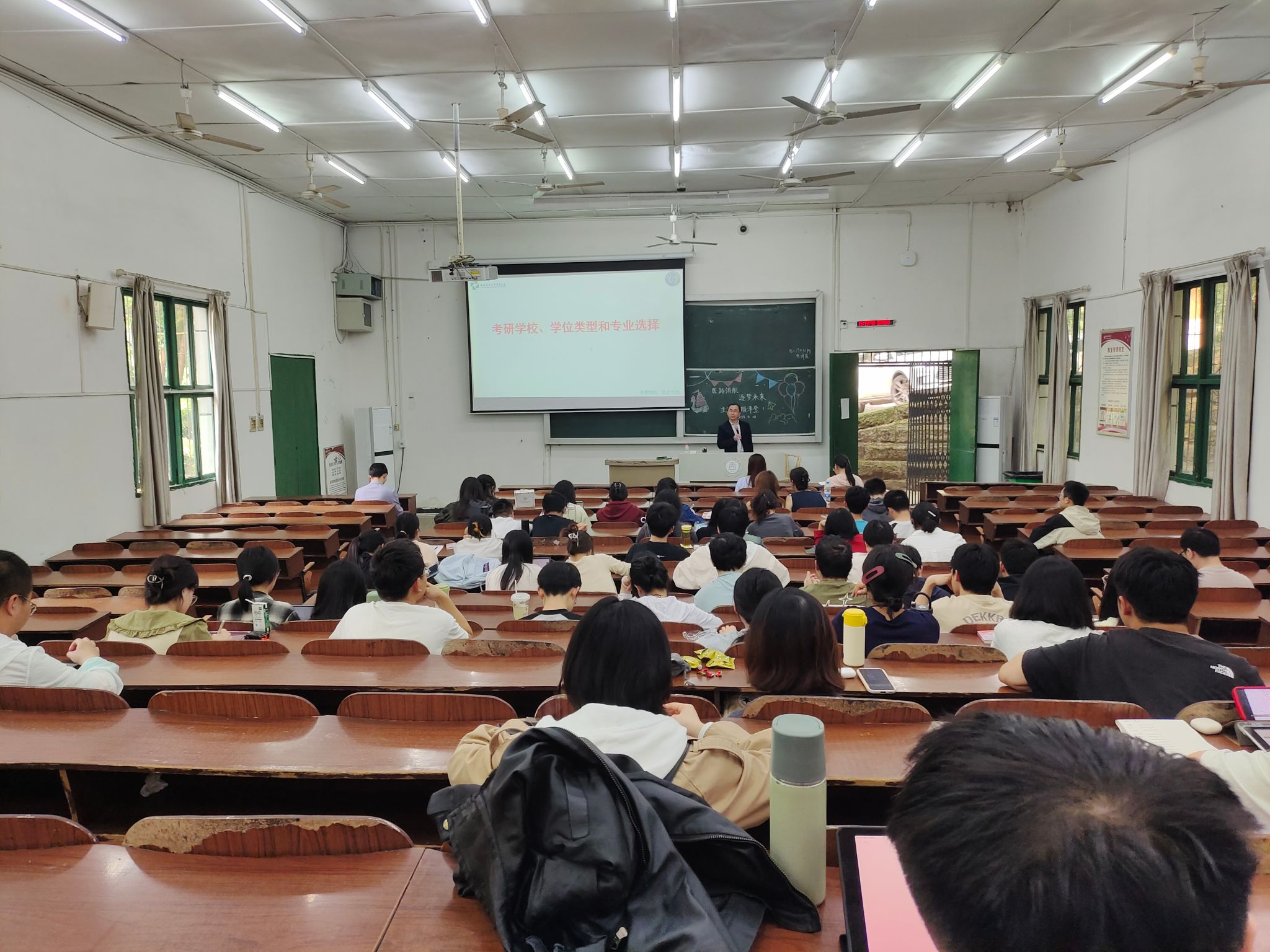 在考研讲座环节,殷泽登简要介绍了西南医科大学临床医学院研究生教育的发展历程,详细讲解了硕士研究生报考时学校与专业选择的各种因素、初试阶段的备考策略、复试的准备与技巧,以及各个环节中的注意事项。同学们专注听讲,积极提问。殷泽登耐心答疑,现场互动热烈。