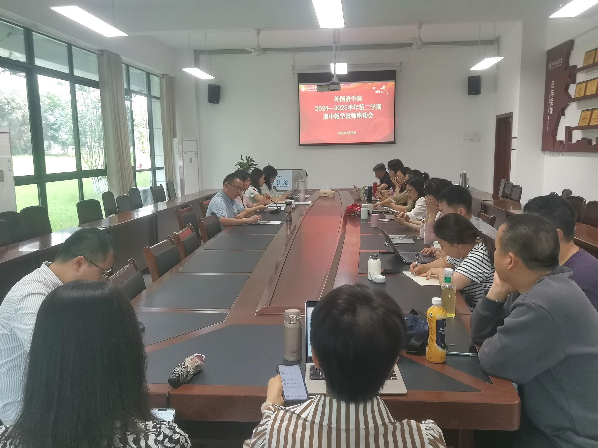 为促进学风教风建设,提升教育教学质量。5月8日下午,外国语学院在城北校区文渊楼134会议室召开了2024-2025学年第二学期期中教学教师座谈会。学院党委书记周晓昀、副院长王琳、各职能科室负责人、各教研室主任、实验室主任、教学秘书、教师代表参加了会议。会议由王琳主持。