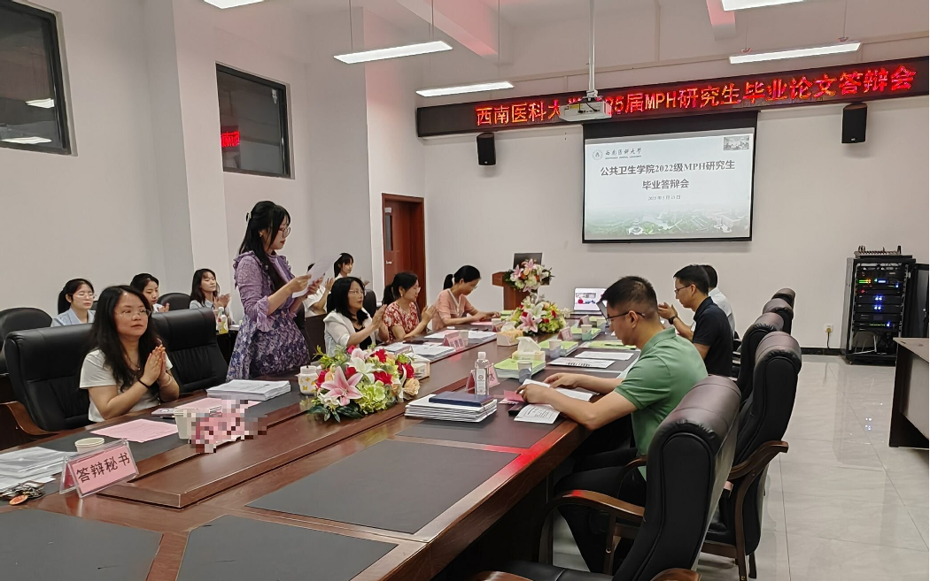5月23日,公共卫生学院在仁济楼334会议室举行2025届公共卫生硕士(职业医学与环境毒理方向)毕业论文答辩会。本次答辩会特邀南京医科大学刘起展教授担任答辩主席,重庆大学彭守建教授、泸州市生态环境监测中心站扈正权正高级工程师、中国工程物理研究院于立冰副研究员、泸州市疾病预防控制中心副主任医师苟钊担任答辩委员,李尚春任答辩秘书。劳动卫生与环境卫生教研室全体教师和在读研究生参与旁听。