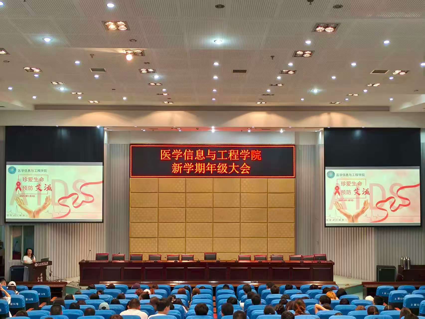 为普及艾滋病防治知识,增强学生健康意识,破除学生艾滋偏见与误解。近日,医学信息与工程学院在城北校区第二学术报告厅开展了“珍爱生命,预防艾滋”安全教育班会。本次班会由辅导员彭雪梅主讲,全院在校学生参加。