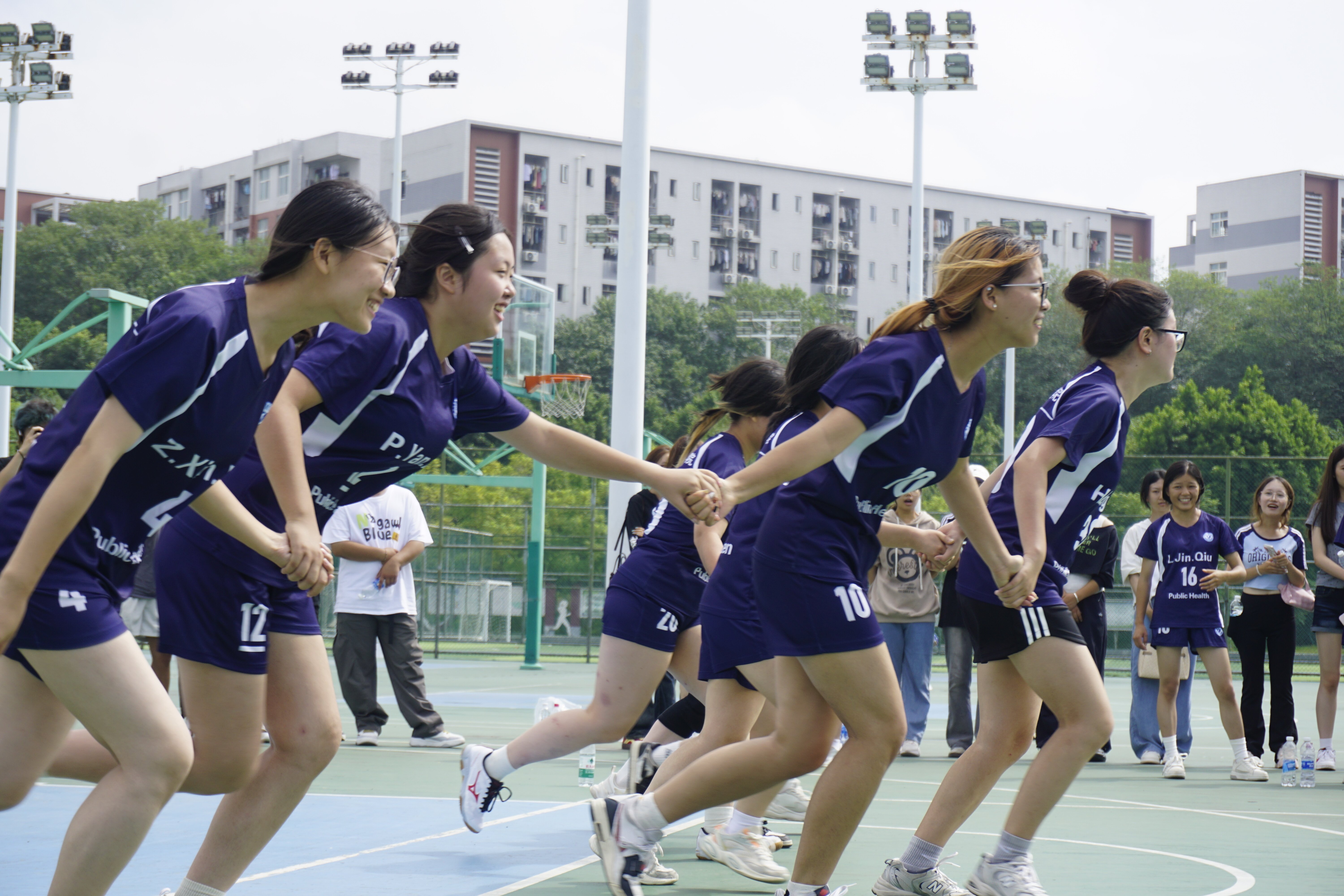 赛事期间,我院学子汇聚赛场,成为一道亮丽的风景线。同学们自发集结于场边,与运动员热情互动,以整齐响亮的口号、此起彼伏的呐喊为选手加油鼓劲。每一声助威,都凝聚着对比赛的关注、对荣誉的珍视。无论是女排比赛的激烈角逐、女篮两度加时的胶着对抗,还是女足点球决战的紧张时刻,同学们始终坚守助威阵地,以高涨的热情为运动员注入信心与力量,成为他们最坚实的“后盾”。
