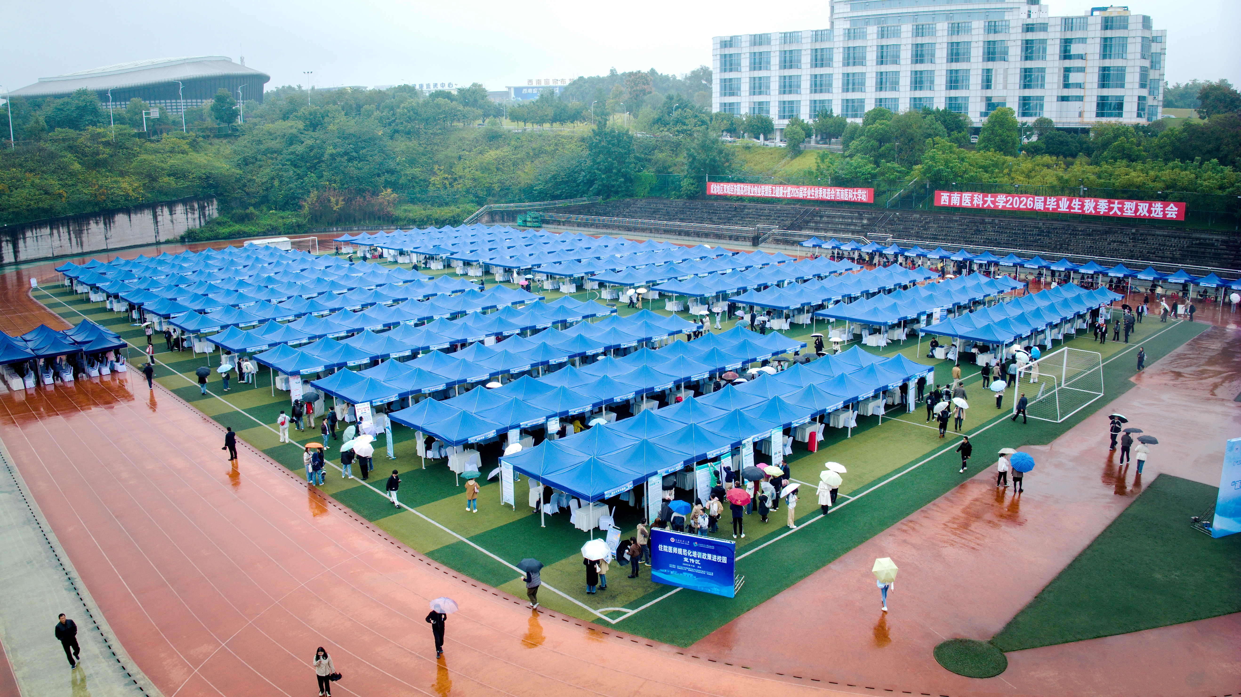 11月3日上午,西南医科大学城北校区青年体育场足球场人潮涌动,2025年四川省秋季医药卫生人才招聘大会暨“蜀汇菁英”四川省高校毕业生就业常设市场医药健康产业专场招聘会(西南医科大学站)正式启幕。本次活动由四川省卫生健康委员会、四川省教育厅联合主办,西南医科大学、四川省卫健委人才服务中心等单位承办,汇聚了四川、重庆、山东、陕西、北京、深圳等地397余家单位,提供涵盖本硕博层次的10000余个岗位,搭建起人才与行业的精准对接平台。