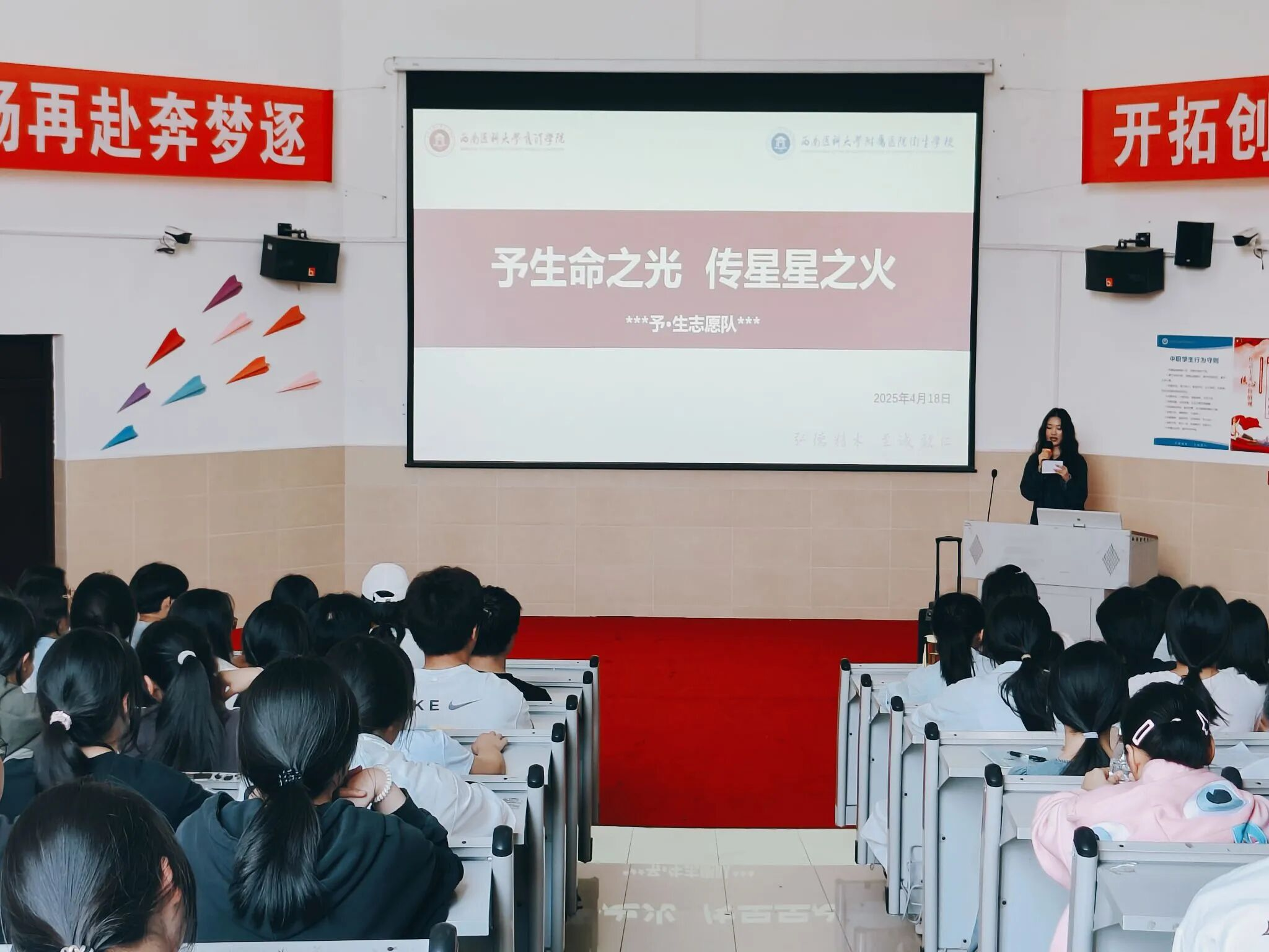 为普及器官捐献与急救知识,弘扬青年志愿服务精神,2025年4月18日下午,西南医科大学临床医学院分团委·学生会联合“予生志愿团队”,走进西南医科大学附属医院卫生学校,开展“春风执笔续生命,星火成炬照长歌”主题志愿服务活动。活动通过宣传,互动,实践的多维形式,带来了一场生动的生命教育课。