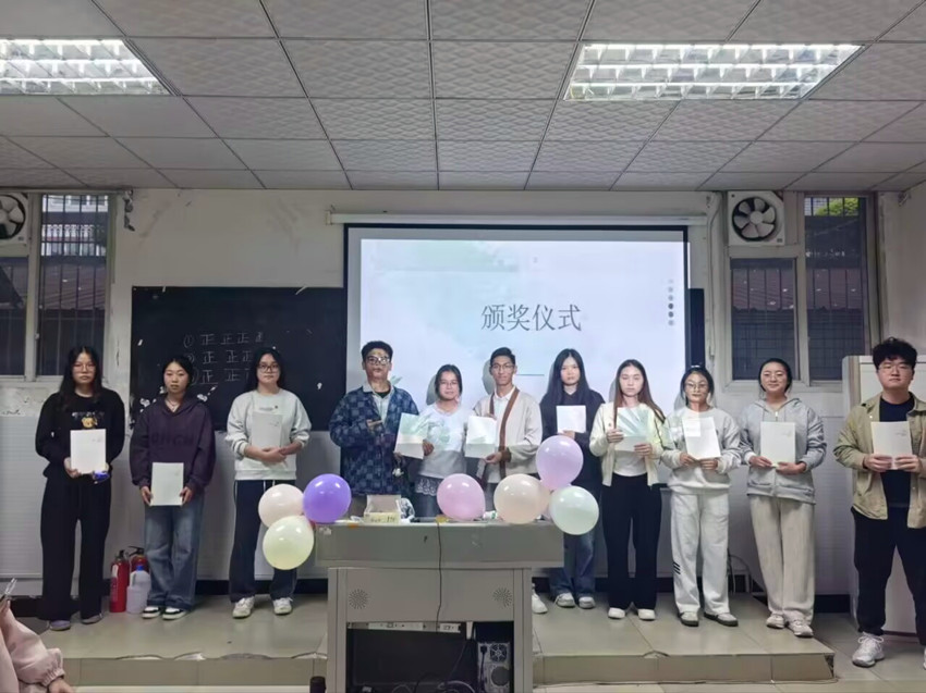 班会筹备阶段,班委会开展了心理图书阅读打卡与班级心态问卷调查,为活动有效开展奠定基础。班会伊始,一段聚焦大学生现实状态的视频直观呈现常见的压力与困惑,迅速引发同学共鸣。在分享环节,李欢欢结合前期调研结果,系统分析了同学们在适应大学节奏、平衡学业与生活等方面的共性问题。多位同学主动上台,分享心理读物中的启发语句,结合个人经历交流心态调节方法与时间管理心得,现场气氛真诚而热烈。随后播放班级年度回顾视频,带领大家重温入学以来的共同记忆,进一步增强了集体凝聚力。活动尾声的“中华小曲库”“猜电影”等团队趣味游戏,将现场氛围推向高潮,同学们在协作中深化友谊、释放压力。