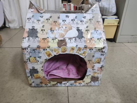 活动期间,同学们以小组形式投入猫屋的设计与制作。从材料搬运到创意装饰,每一处细节都凝聚着团队的协作与关怀。在亲手搭建温暖小窝的过程中,同学们不仅锻炼了动手能力,更体验到专注劳作带来的心灵沉淀,感受生命与生命之间的温暖共振。经评选,李姝芜小组获得一等奖,张翰月小组、李欣妍小组获得二等奖,朱海宇小组、李馨怡小组、赖家惠小组获得三等奖。