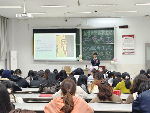 活动自启动以来,受到同学们的积极响应。经线上初赛遴选,一批优秀作品脱颖而出,进入决赛展示环节。决赛现场,选手们分享了作品的创作理念与心路历程,充分展现了扎实的动手能力与丰富的内心世界。郑雪甜同学的作品《江月弦》以日常闲置物品为材,手工制成琵琶,诠释了“变废为宝”的环保理念;李龙燕同学的《非遗宋锦珍珠海棠扇》将宋锦的华美与珍珠的温润相融合,展现出非遗技艺的当代生命力;龙奕杉同学的《梨花木簪》则以木质为基,雕琢出古典簪饰的雅致韵味。活动在热烈的颁奖仪式与互动抽奖中圆满落幕。每一件作品都凝聚着同学们的匠心巧思与情感表达,体现出手工艺制作与心灵成长的深度联结。
