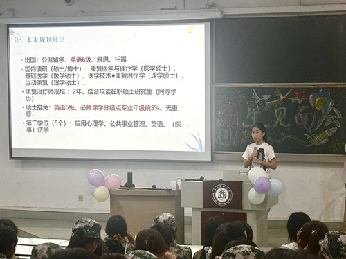 讲座伊始,王剑雄以提问的方式,引导新生了解康复治疗学相关知识,分析就业前景,并在现场答疑解惑。她通过投票互动调动现场同学积极性,用生动案例分享优秀校友故事,引导新生思考个人目标规划。随后,吴小静从假期回顾过渡到调整大学状态,以学业、心理、行为三方面展现大学学段的变化,呼吁同学们正确合理开启大学生活,并详细介绍中国康复医学未来发展趋势。最后,陈彦君从两个方面四个篇章开启康复之旅,实现从课堂到临床的康复学习路之跨越,建议新生融合学工、懂得平衡、寻找价值,充实自我。推荐其他辅助学习方法,做到会听课会用课,明确职业规划方向,扎实基础,为康复事业努力。