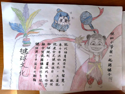 本次活动,同学们充分发挥想象力与创造力,用手中的画笔描绘出他们心中的毽球世界。有的同学运用独特的色彩搭配和创意构图,将毽球与校园元素巧妙融合,传递出毽球运动在校园中的蓬勃发展;有的同学在海报中加入了有趣的文字标语,为毽球运动加油助威。同学们用不同的绘画风格和表现手法,赋予毽球主题海报丰富的内涵。经过评选,任曦月同学斩获本次活动一等奖,陈泳欣、汤子洋同学荣获二等奖,葛艳雪、樊瑞杰、车紫瑄同学荣获三等奖。获奖作品以鲜明的色彩、独特的创意和精湛的画技,生动展现了毽球运动的魅力,赢得了评委们的一致好评。