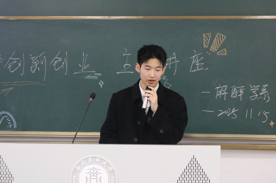 为精准对接大创项目需求,帮学生打通“想法-落地-立项”全链路,避免学生盲目准备,降低学生试错成本,麻醉学系于11月15日晚在学海楼203举行了创新创业专题讲座第二场,取得圆满成功。