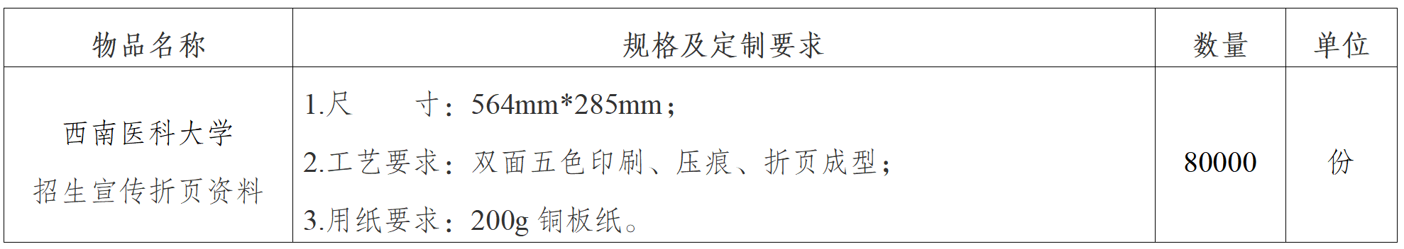 1.项目名称:西南医科大学招生宣传折页资料设计印制服务项目。