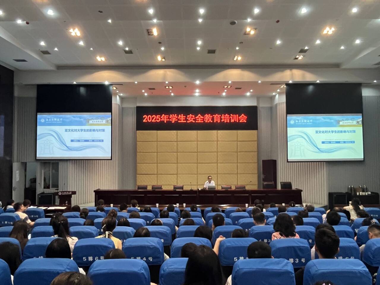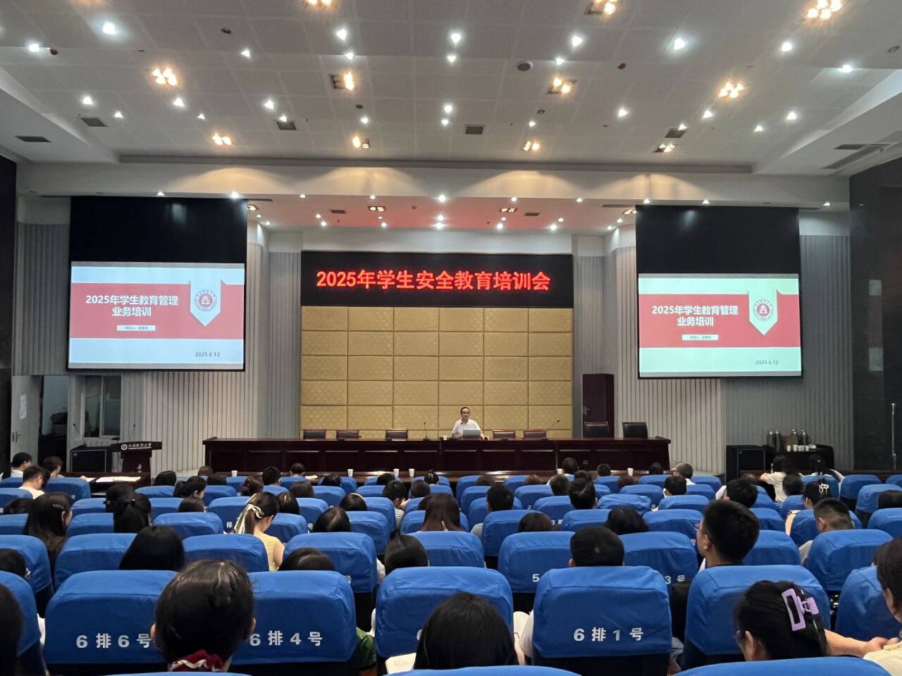 2025年6月12日上午9点,学校在城北校区第二学术报告厅召开了学生安全教育培训会议。学校党委常委、副校长聂敏海出席并讲话,学生工作部全体人员以及各二级院系全体辅导员共计约140人参加会议。会议由学生工作部副部长易娟主持。