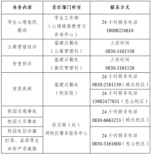 亲爱的同学们:校园是我们学习生活的重要场所,安全始终是头等大事。为了帮助大家在遇到突发情况时能够得到及时有效的帮助,我们特别整理了校内学生应急业务通道。无论何时何地,只要遇到困难,请拨打以下电话。
