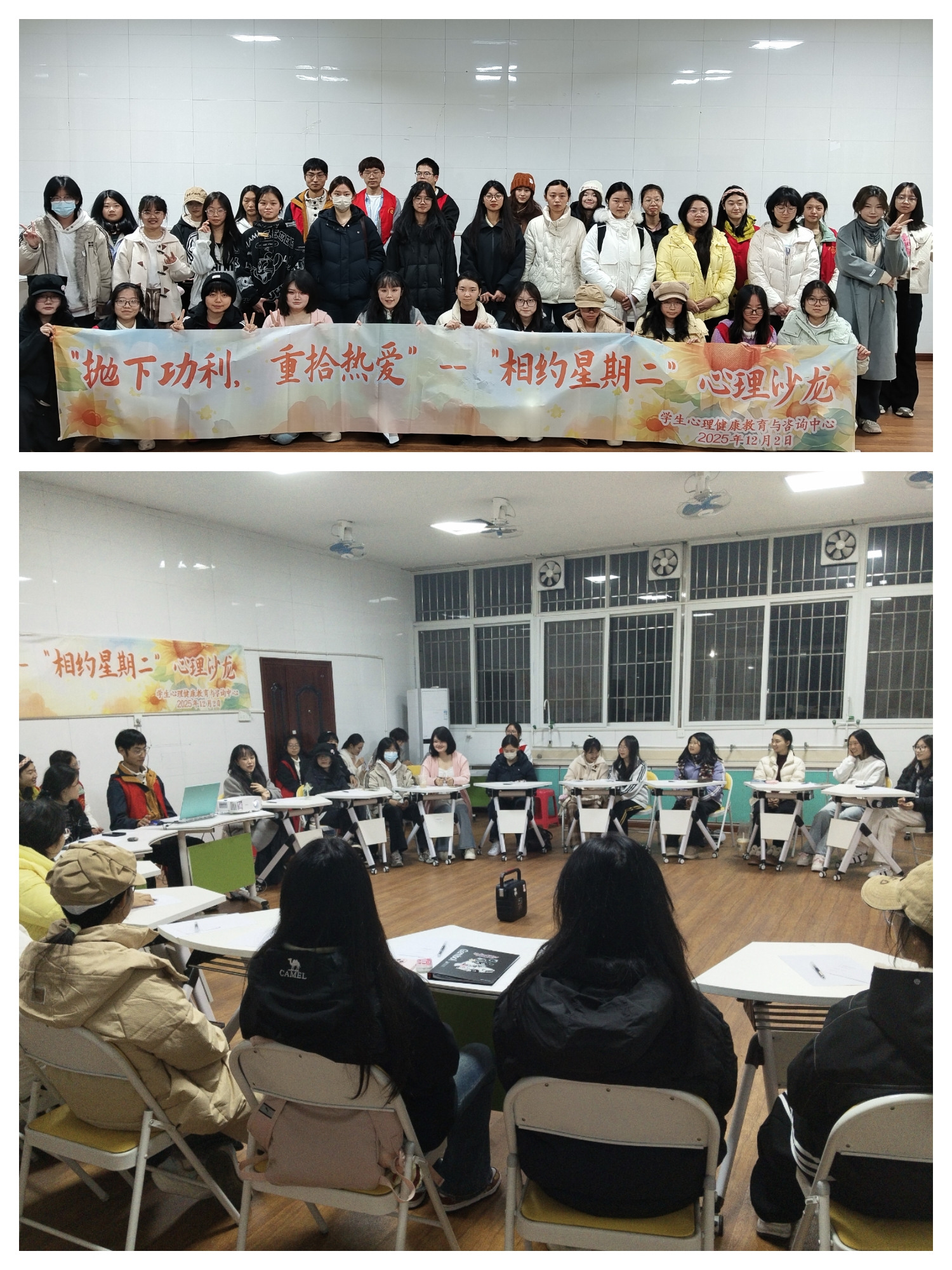 12月2日,第八期“相约星期二”心理沙龙在海川楼1-8团体心理辅导室举行。本次活动由学生工作部主办,“心悦颜笑”朋辈心理辅导团承办,以“抛下功利,重拾热爱”为主题,邀请学生心理健康教育与咨询中心老师刘驰钰担任嘉宾,吸引全校20余名学生积极参与。
