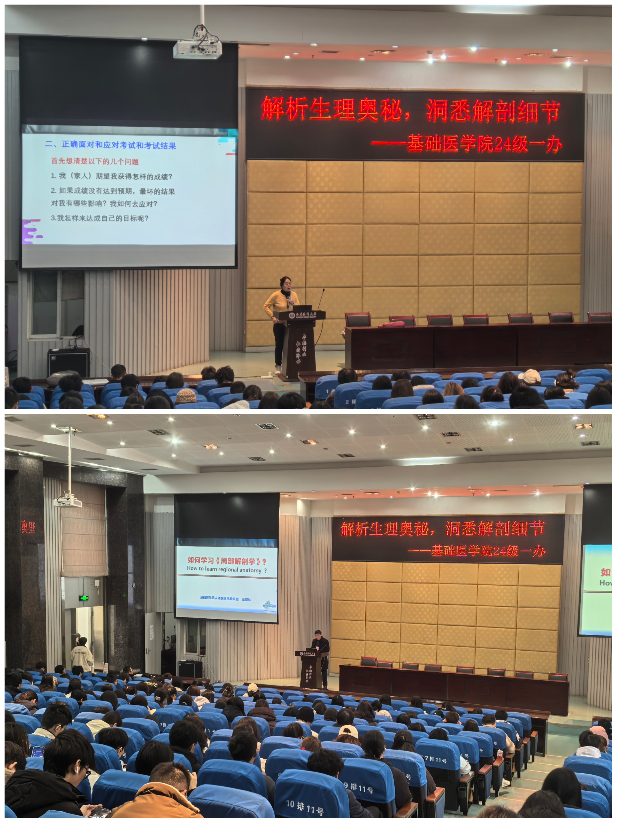 为助力学生攻克生理学与局部解剖学的学习难点,夯实医学专业基础,12月5日上午,基础医学院2024级一办在城北校区第二学术报告厅举办了“解析生理奥秘,洞悉解剖细节”学习方法分享讲座。本次活动特邀生理学与局部解剖学专业教师担任主讲,年级办公室200余名同学积极参与。