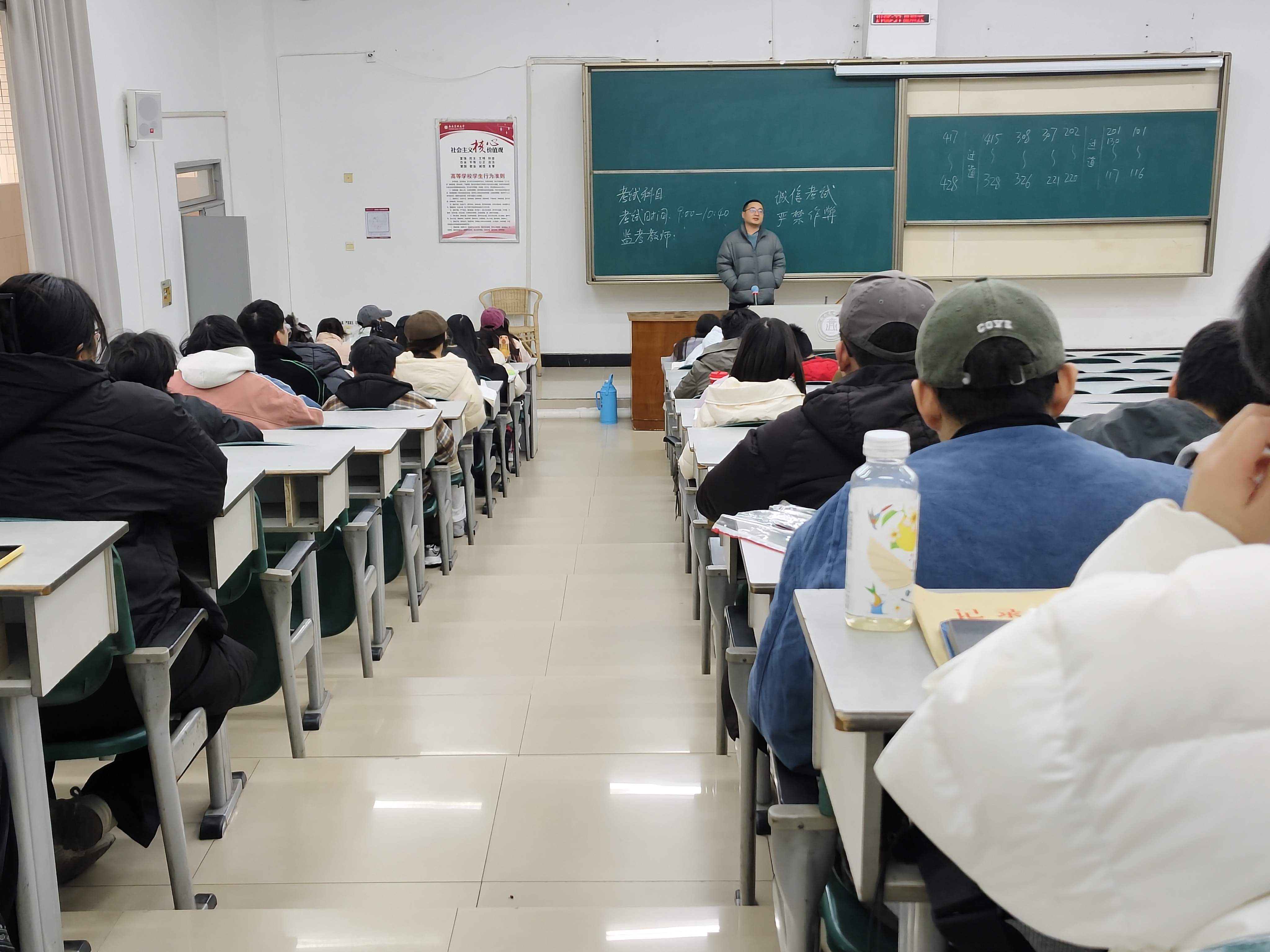 针对期末考试考风考纪方面,会议组织学习了学校考试管理规定和违纪处理办法,明确考试纪律要求。会议指出,考风是学风的重要体现,诚信是做人的根本准则。要求学生自觉抵制违纪舞弊行为,端正考试态度,以真实水平检验学习成果,共同维护公平公正的考试环境。