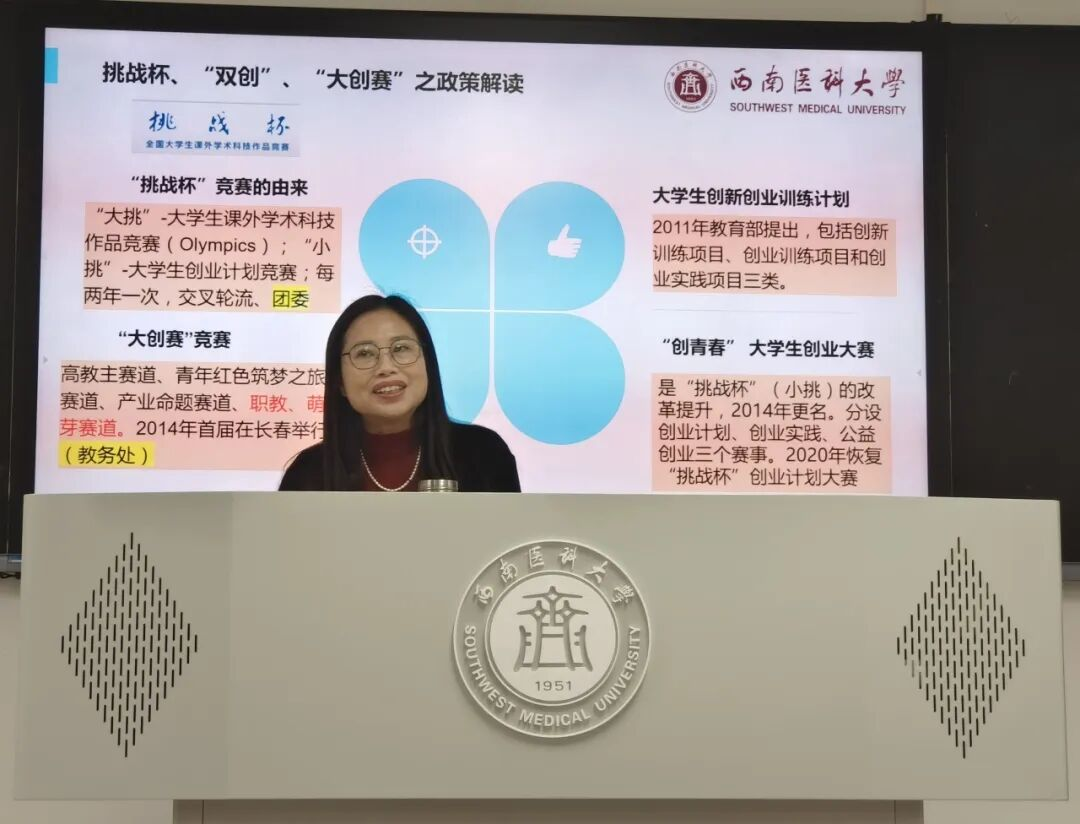 3月16日晚7点,文渊楼4楼座无虚席,由临床医学院分团委·学生会城北分部承办的“点燃创新火种,开启创新新程”主题讲座在这里成功举行。西南医科大学法学院教授、副院长羊海燕受邀主讲,为临床医学院全体同学分团委老师及2023、2024级临床拔尖创新班全体同学带来了一场干货满满的创新创业知识盛宴。