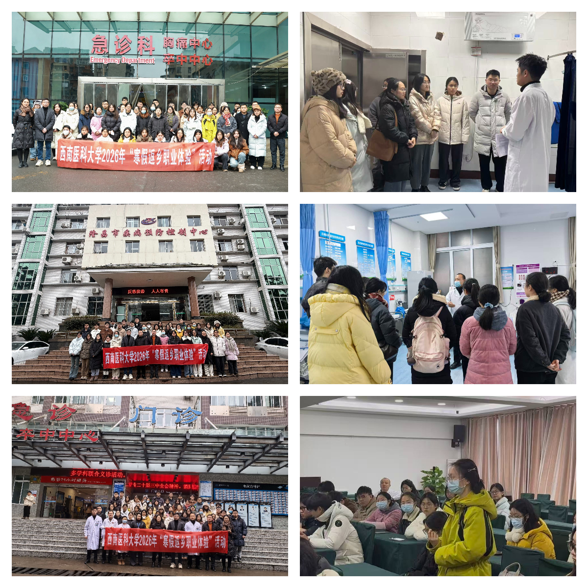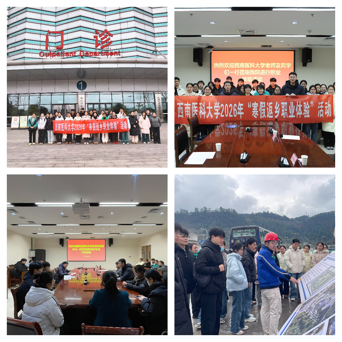 为深入贯彻落实教育部关于开展2026届高校毕业生“寒假促就业暖心行动”的工作要求,西南医科大学积极响应,主动作为,于2026年1月20日至21日,成功举办“寒假返乡职业体验”活动。本次活动共吸引103名同学报名参与,涵盖多个专业和年级,分赴内江、眉山、宜宾三地13家医院开展职业体验,成功搭建起学生与家乡医疗卫生机构之间的沟通桥梁,实现了一场合作共赢的“双向奔赴”。