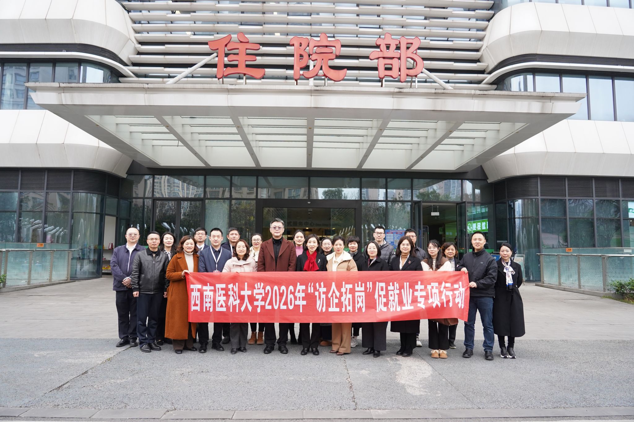 学校高度重视毕业生就业工作,校长何涛带领招生就业处、教务处、研究生院等职能部门领导在前期开展了系列“访企拓岗”专项行动,累计走访8家医院,1家药企,对接宜宾、内江、眉山等地卫健委。通过深度沟通,双方共同谋划和制定了“寒假返乡职业体验”活动方案。