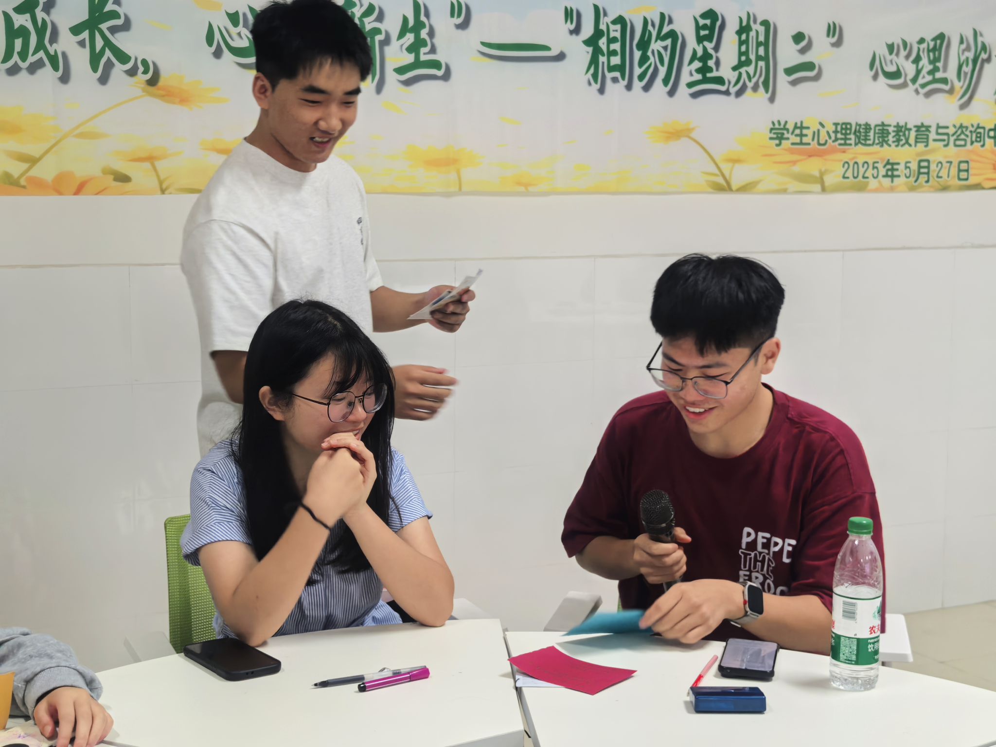 5月27日晚,由学生工作部主办、“心悦颜笑”朋辈心理辅导团承办的2025年第四期“相约星期二”心理沙龙在海川楼1-7团体心理辅导室举行。本期活动以“愈见成长,心境新生”为主题,特邀人文与管理学院张介平副教授担任嘉宾,吸引了20名学生报名参与。
